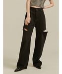【トップス】 ホルターネックで華奢見えにしてくれるのと、ウェーブあるあるの鎖骨周り乏しい感じを隠してくれる1枚!! 【デニム】 ついに出ましたよ!! 太もも切り込み入ってるデザイン驚くほど細見えします🥹🥹 ウエストから足のラインがストンと落ちる形でとにかく下半身綺麗に見えました!! 丈が履いた感じ長すぎなかったので、Sでちょうど良かったです🫶