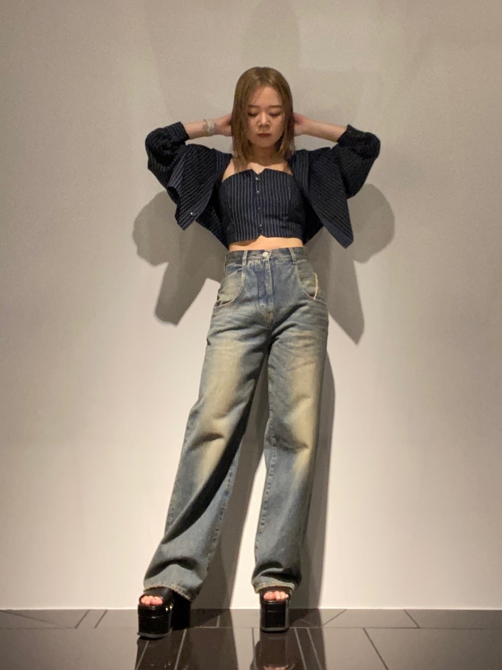 【トップス】 シャツとビスチェがセットになったアイテムです🫶 別々になるのでどのシーズンでも気回せそうです🥹 ビスチェは後ろがゴムになってるので楽に着れました👏 【デニム】 ベージュが少し入ったUSED感のあるデニムです🩷 秋にピッタリの色味でした🍁 EMODAのワイドデニムおしりが無くなるんです😳❤️🔥 スタイルアップできること間違いなしなのでオススメです💎