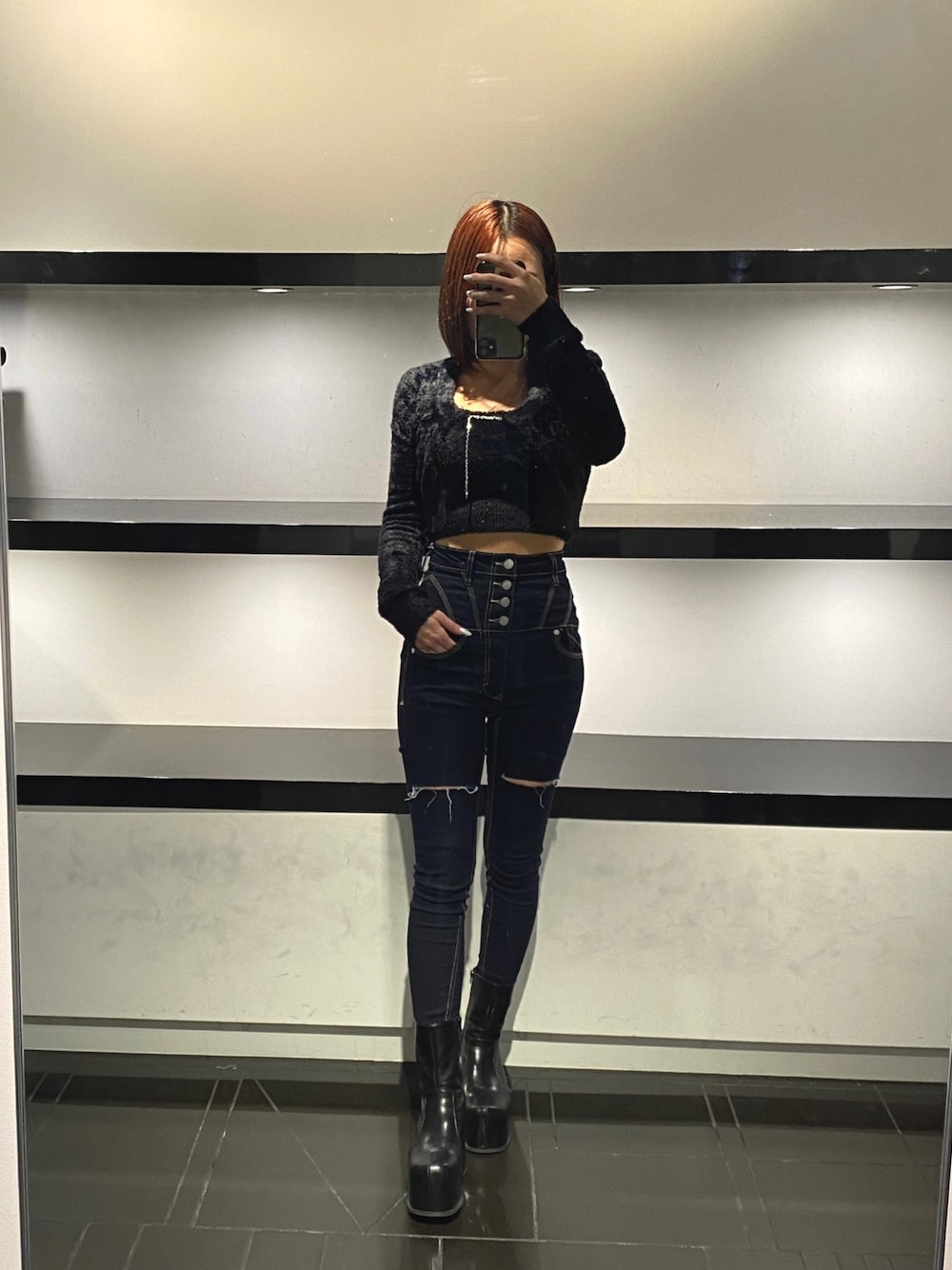 【デニム】 太ももにカット入った4つボタンのスキニーデニムです♡ かなりストレッチあるので楽に履いていただけます🫶 太ももに切り込みがあることによって太ももののっぺり感が減りスッキリ見えやすかったです!!
