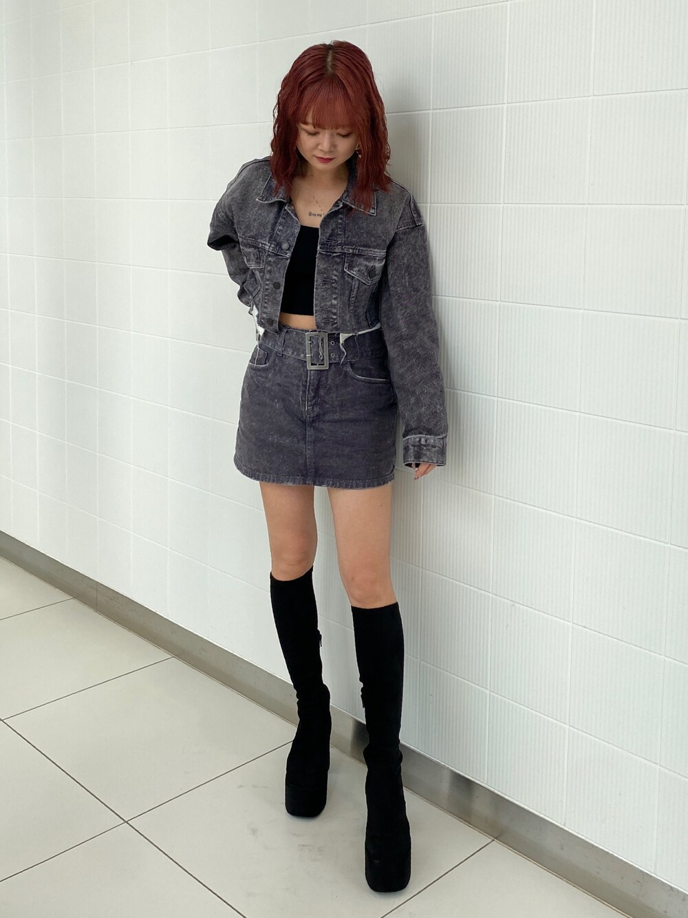 中田鈴乃(EMODA)のデニムジャケット「カットオフクロップドデニムジャケット」を使ったコーディネート