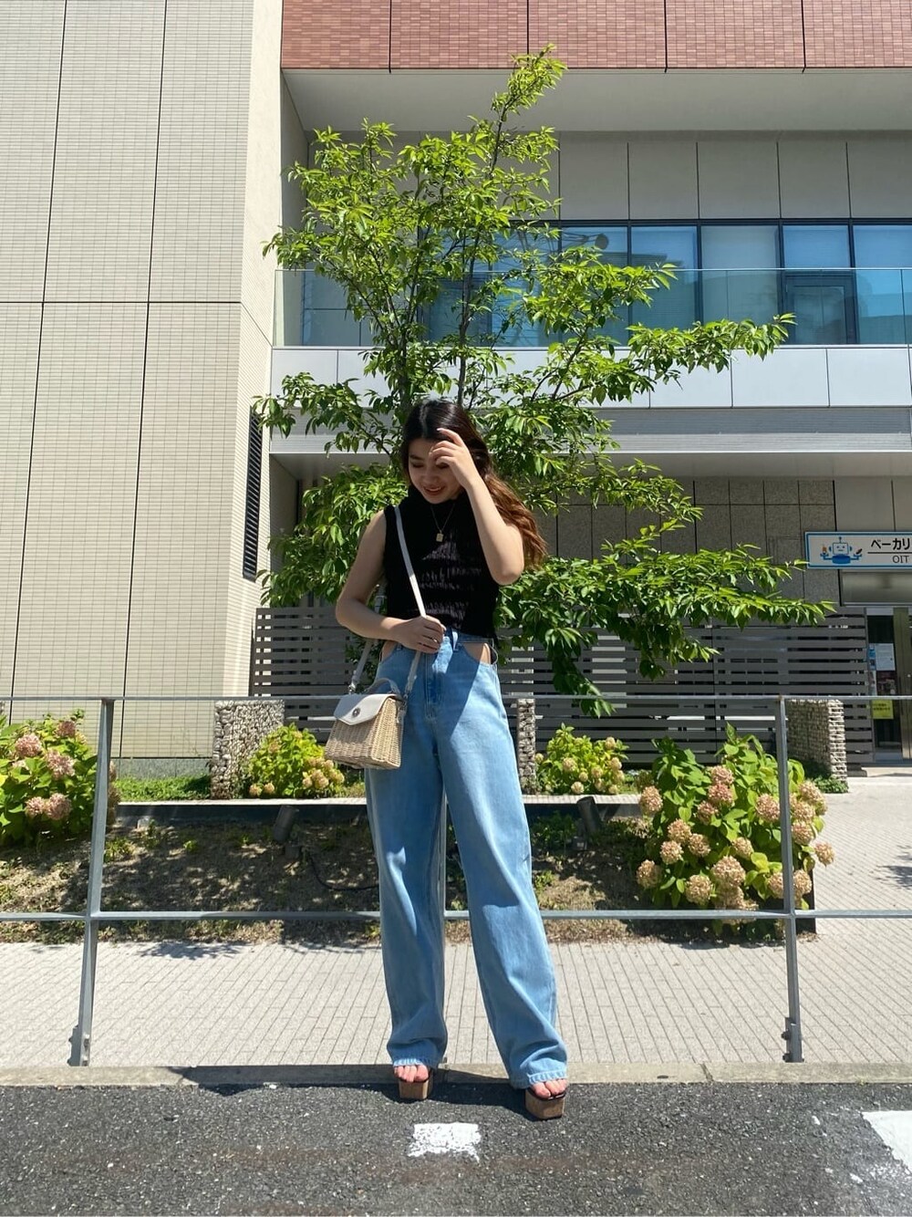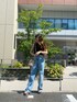 原田玲奈(EVRIS)のデニムパンツ「オープンウエストワイドデニムパンツ」を使ったコーディネート