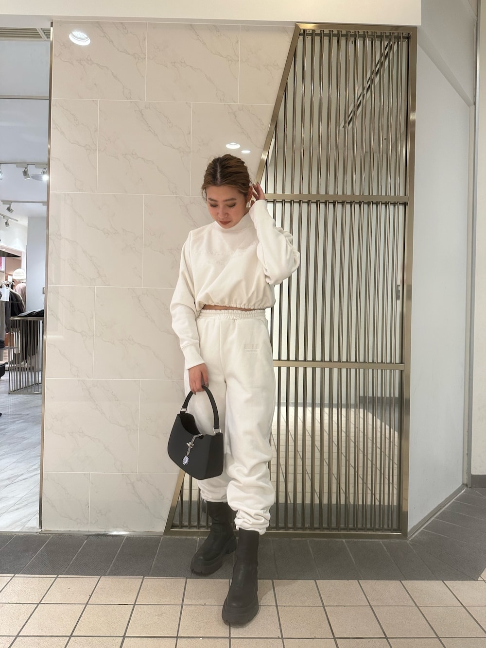 原田玲奈(EVRIS)のスウェットパンツ「スウェットルーズパンツ【セットアップ着用可能】」を使ったコーディネート