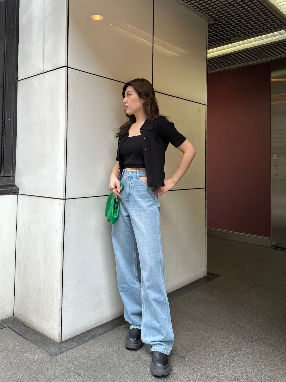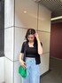 《カジュアルデニムコーデ🌿🌿》 【tops】中にパットつきのキャミソールがセットになっていて便利にインナーとしても使えます♡ 【denim】去年も大人気だったデニムでウエストが空いているデザインですごく細見えします!下着も透けないので安心して着用できます◎ 【boots】中にインソールが入っており低身長の方にもオススメのブーツ✨すごく軽量なので足が疲れずお出かけにもぴったり🎶 【bag】チェーンの部分にEマークのロゴが入っているのがポイントで、がま口が大きくひらくので使いやすいサイズ感です!