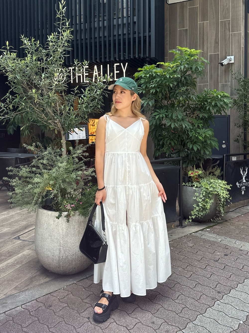 原田玲奈(EVRIS)のワンピース「【パッド付】肩リボン調整バックオープンティアードキャミワンピース」を使ったコーディネート