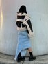 原田玲奈(EVRIS)のデニムスカート「アシンメトリースリットロングデニムスカート」を使ったコーディネート