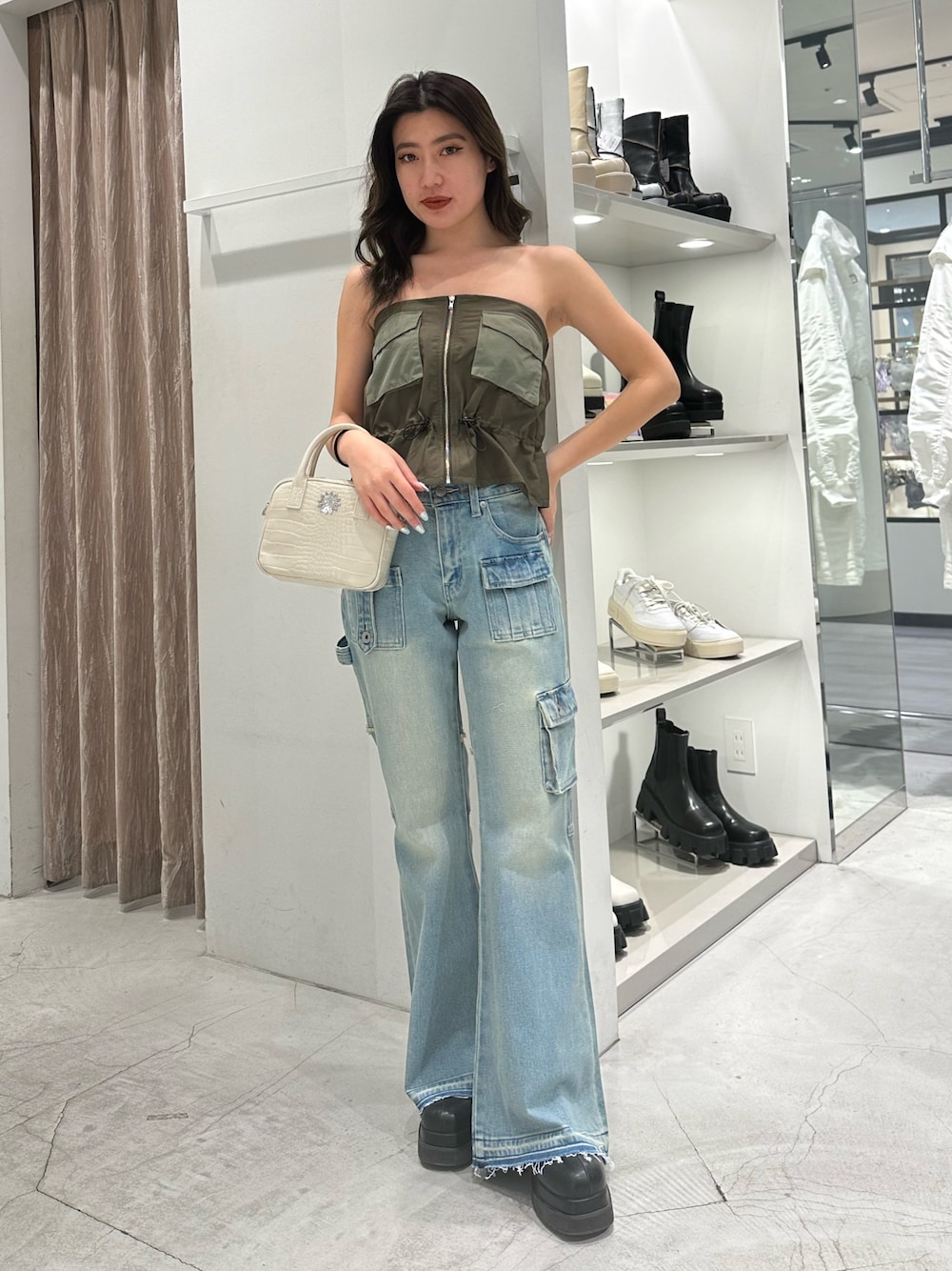 原田玲奈(EVRIS)のキャミソール「ミリタリーデザインベアピスチェ」を使ったコーディネート