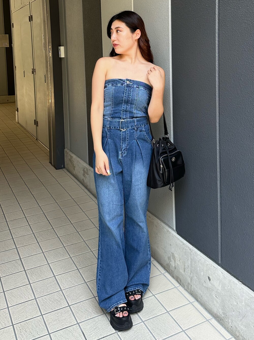 原田玲奈(EVRIS)のつなぎ/オールインワン「デニムオールインワン」を使ったコーディネート