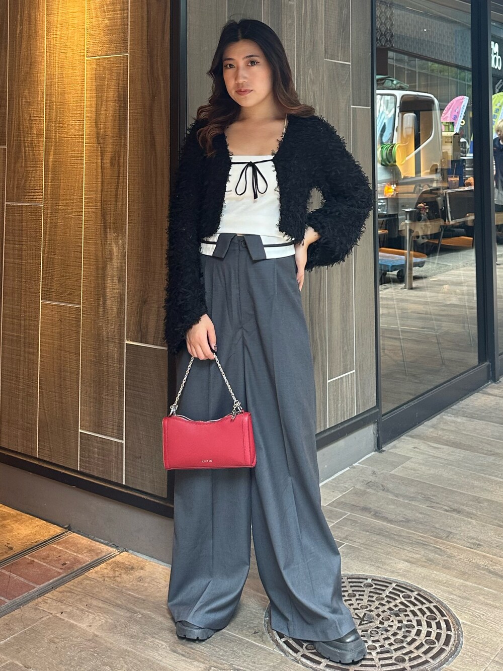 【秋の大人っぽコーデ♡】 《tops》シャギーの生地感が柔らかくてさらっと着用でき、秋大活躍します! 《pants》ルーズなスラックスパンツデウエストにタックのラインが入っている為、ウエストが綺麗に見えます!Sサイズ着用。 《bag》手持ちでも肩掛けもできてトレンドのREDの色がかわいい❣️ 《boots》見た目に比べすごく軽いブーツで足首も細見えするブーツです! 23cmでSサイズ着用です。