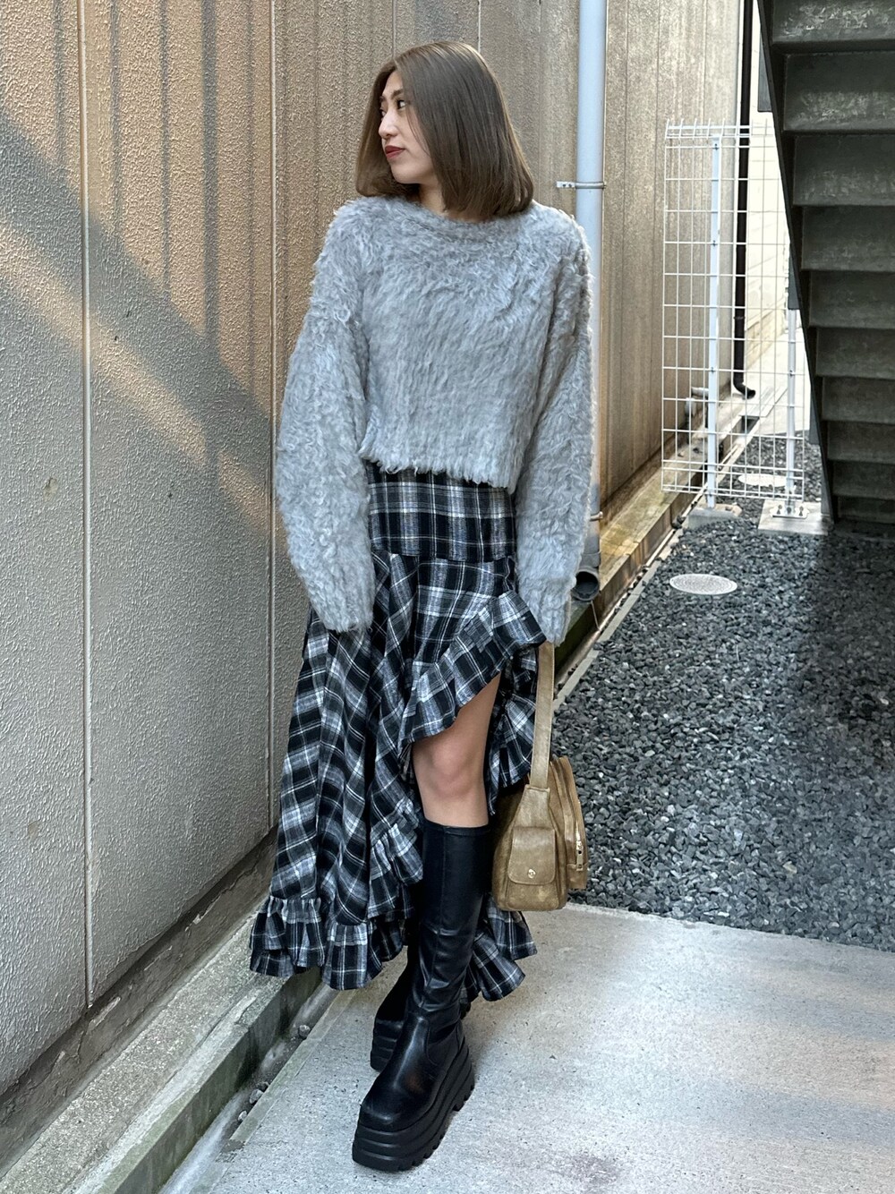 【海外ガールコーデ♡】 tops→生地感がやわらくてふわふわなニット!丈も低身長ですっきりと着用できます! skirt→アシメトリーのデザインがかわいくて153cmの身長でもすっきりと着用できます♡Sサイズ着用です。 bag→ まちがしっかりとありビンテージ感がかわいいbag。 boots→ すごく軽くて高さも一定なので足も長く細見えします! 153cmの足23cmでSサイズ着用。