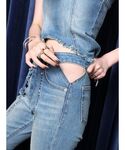 原田玲奈(EVRIS)のデニムパンツ「スタッズオープンウエストフレアデニムパンツ【セットアップ着用可能】」を使ったコーディネート