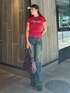 tops→生地感が柔らかくてストレッチ性もきいており丈も少し長めで着用しやすい文感です。 denim→ デザイン 大胆な汚れ加工がグランジ感のあるワイドデニムパンツです。EVRIS 定番のワイドデニムよりも大き目なサイジングで、今年らしいトレンド感のある一枚です。 bag→生地感やわらかくて、まちもしっかりとある為沢山はいります! boots→すごく軽くて傾斜があまりない為歩きやすくて安定したバランスをとれます。 23cmSサイズ着用。