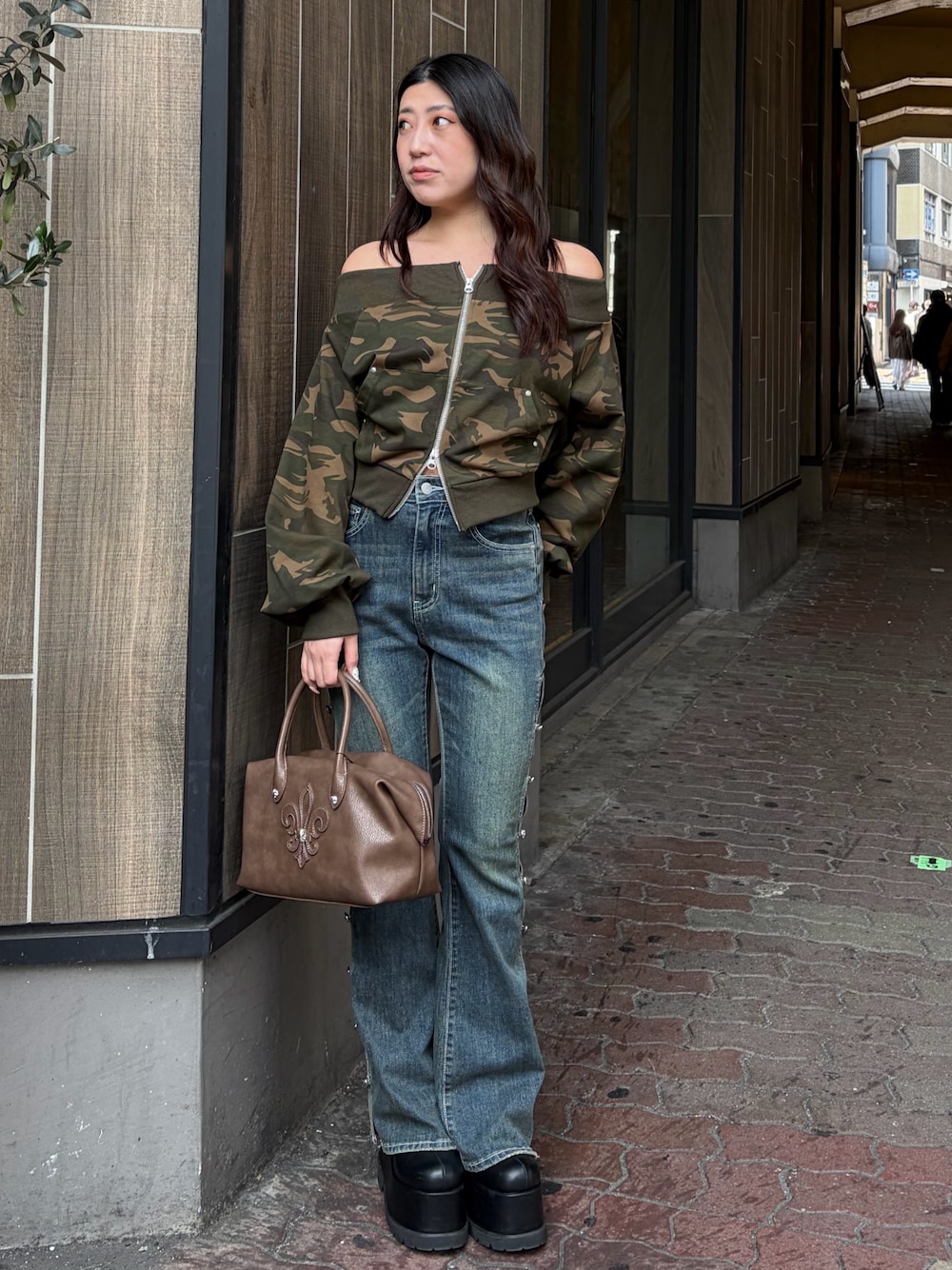 denim→シルエットがきれいなデニムで足が細見えします!生地感も柔らかくて履きやすいデニムです!ビジュのデザインも evrisらしくてかわいい! bag→大容量にはいるサイズで生地も柔らかくて上品な印象であわせれます! boots→足首にフィットするストレッチフェイクレザー素材を使用した厚 底ブーツです。人気の盛れブーツのショート丈で軽くて歩きやすい! 23cmでSサイズ。