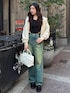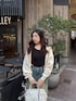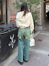 tops→ボディースーツでウエストラインが綺麗に見えます!今年は新色の水玉も登場✨✨ denim→生地が柔らかくて細みのワイドデニムでさりげなくレースがはいってるのがかわいい! Parker→セットアップ可能で前にボタンが付いているためトップスでも平織でも着用できます。