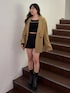 tops→ スタッズがかわいくてうごくときらきらお洋服が映えます。丈もミニ丈なので細見えします! jacket→すごく生地感柔らかくて軽く袖のリボンがポイントでかわいい♡ 153cmでワンピース丈でも着用できます! pants→ すごく形がきれいで腰の位置高くみえ細見えします!Sサイズ着用。 boots→足首にフィットするストレッチフェイクレザー素材を使用した厚 底ブーツです。人気の盛れブーツのショート丈で軽くて歩きやすい!23cmでSサイズ