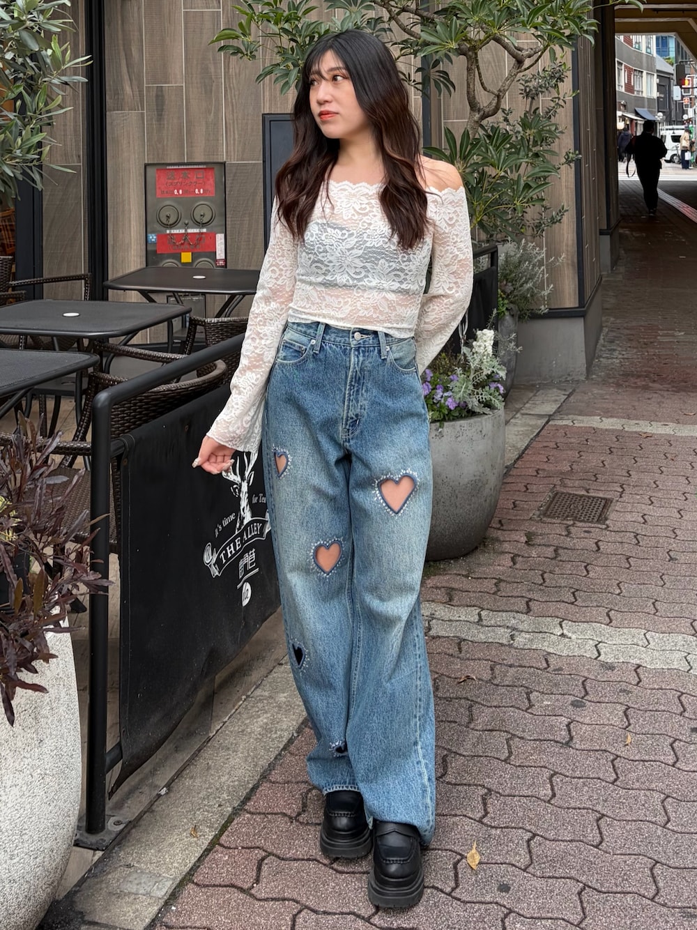 tops→レースのオフショルで大人っぽく着用できます!夏手前まで大活躍のトップス! denim→去年も大人気で今年はビジュがついてバージョン✨✨ハイウエストなので足長効果抜群です!Sサイズ着用。
