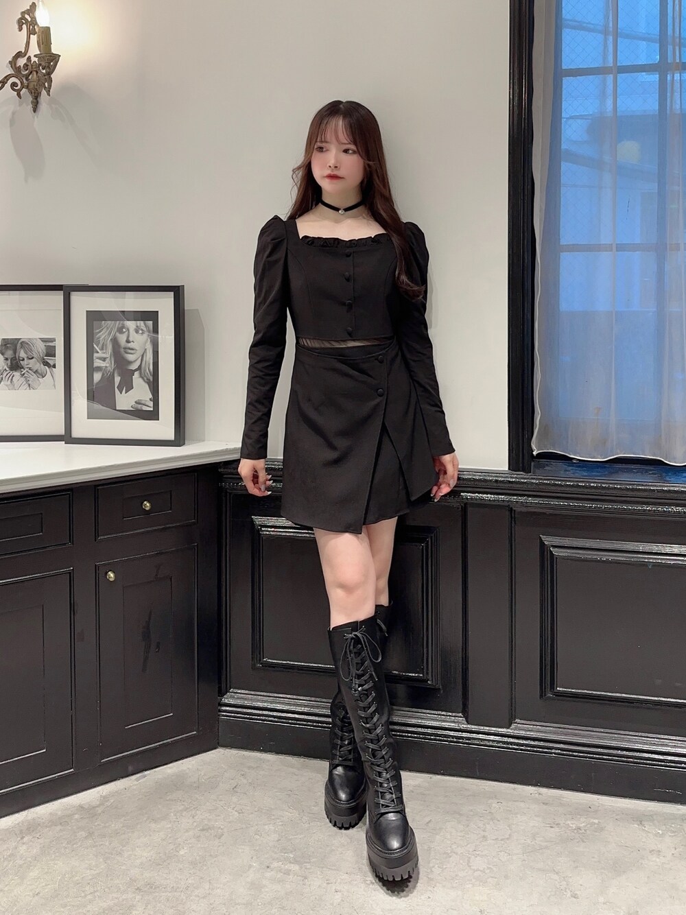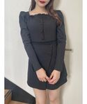 トレンド感たっぷりミニ丈ワンピース🐈⬛ スッキリしたデコルテ開きとウエストのシアーが抜け感を演出してくれます🤍 スッキリとした袖なのでコートやジャケットを着てもストレスフリー✨️ ロングブーツを合わせるのがお気に入り❤︎