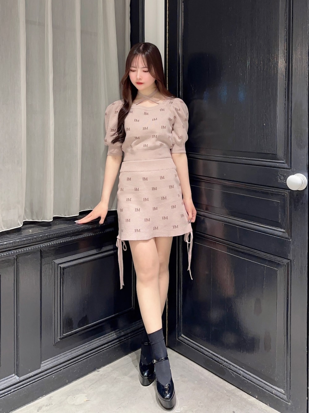 乃愛(EATME)のニット/セーター「EMロゴニットTOP(セットアップ可能)」を使ったコーディネート