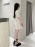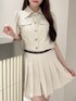 【ブラウス】 ブラウスとして着るのも可愛いですが、フロントボタンを開けて羽織りとしても使えるので万能アイテム✨️後ろのロゴもポイント🥺 【スカート】 ウエストのロゴテープがポイントのプリーツスカート🫧シンプルデザインなので合わせやすく着回し力抜群! 【シューズ】 太めのベルトとストラップで華奢見えが叶います✨️高低差があまりないので安定感があり歩きやすいです!