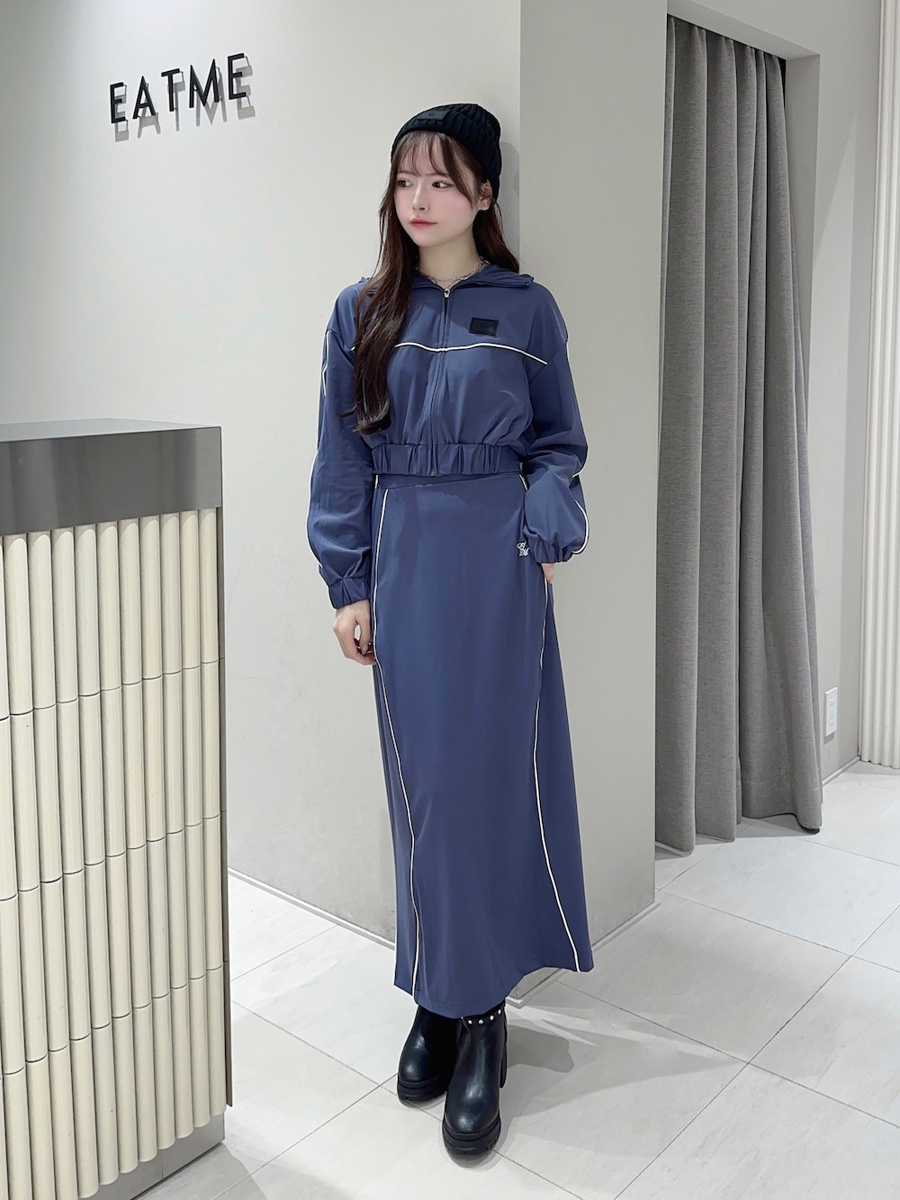 乃愛(EATME)のスカート「トラックラインスカート(セットアップ可能)」を使ったコーディネート