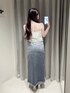【トップス】 コサージュ付きトップス✨️カップ付きなので1枚でサラッと着られます◎露出が気になる方はカーディガンを合わせたコーデもオススメ! 【スカート】 スリットデニムスカート🤍グラデーションカラーのトレンド感のあるデザイン✨️フロントのカットが広すぎないので足を細く見せてくれます◎ 【シューズ】 リボンが目をひくガーリーなサンダル🎀可愛らしいコーデにもパンツスタイルにも合うので万能です✨️24.5cmでLサイズを着用しています!