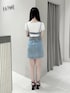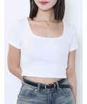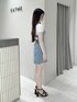 【トップス】 ロゴプリントTシャツ🤍伸縮性のある素材で着心地が良く、ほどよくフィットしてくれます✨️スクエアネックでデコルテが開いているのでネックレスを付けるのがオススメ❤︎ 【ジャンスカ】 デニムジャンスカ🤍後ろがゴムになっていて体にフィットするデザインなのでスタイルアップします🥺❤︎1枚でキャミワンピとして着るのもオススメです❕ 【シューズ】 リボンが目をひくガーリーなサンダル🎀可愛らしいコーデにもパンツスタイルにも合うので万能です✨️24.5cmでLサイズを着用しています!