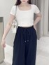 【トップス】 ロゴプリントTシャツ🤍伸縮性のある素材で着心地が良く、ほどよくフィットしてくれます✨️スクエアネックでデコルテが開いているのでネックレスを付けるのがオススメ❤︎ 【パンツ】 スウェットパンツ🤍ゆったりシルエットで体のラインを拾わないので楽ちんに着られます◎ウエストはゴムなので着心地も抜群✨️ 【シューズ】 PUMAのスニーカー✨️少し厚底なのでデニムパンツとも相性抜群!シンプルで合わせやすいデザインです🤍24.5cmでLサイズを着用しております!