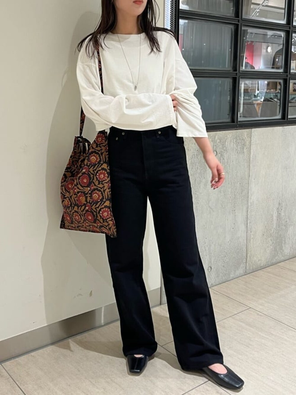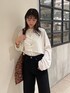 【トップス】レイヤード仕様のデザイントップス!インナーが深めに空いているので、背中がチラッと見えて可愛いバックスタイルになっております♡薄手の素材感なので今からでも着ていただけます! 【デニム】大人気ハイウエストオーガニックコットンルーズデニムのブラックが新色で登場☆ オーガニックコットンなのでとにかく柔らかい生地感で履き心地抜群です!! ルーズなサイズ感で体のライン拾わず、ハイウエストなのでスタイルよく履いていただけます! 【シューズ】足の甲が綺麗に見えるように深く空いたデザインで、インソールがフワッとしてて疲れにくいフラットシューズ◎