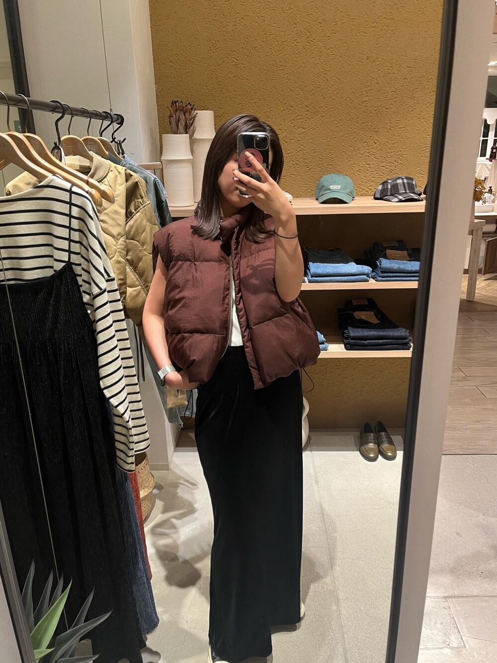 齊藤季梨(Ungrid)のダウンベスト「中綿ショートベスト」を使ったコーディネート