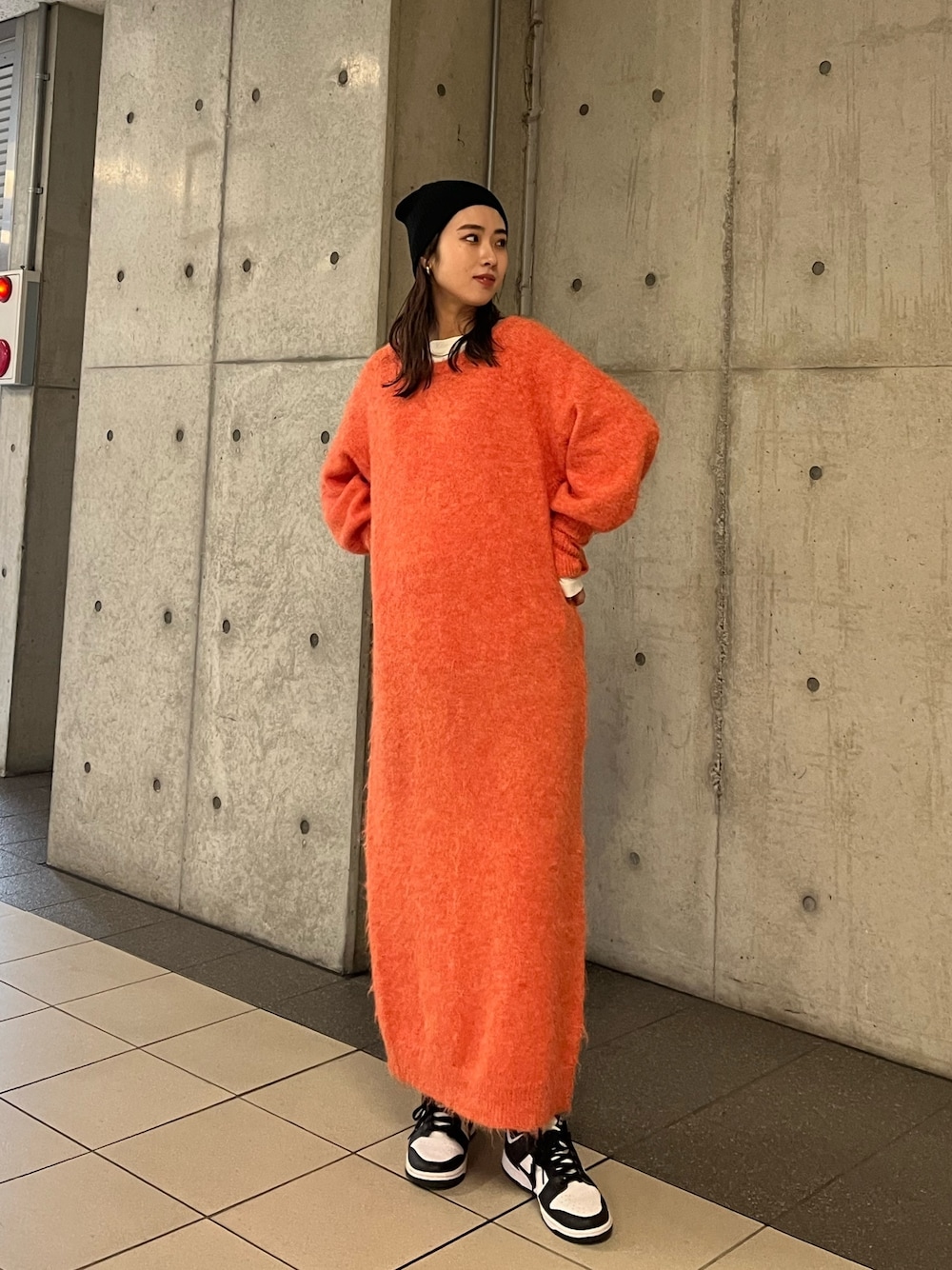 齊藤季梨(Ungrid)のニットキャップ/ビーニー「リブ編みニット帽」を使ったコーディネート