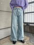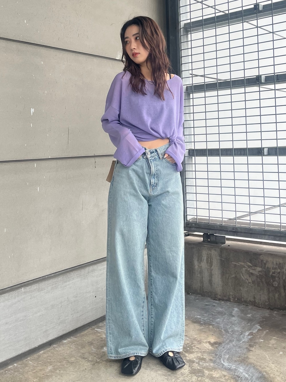 【トップス】 程よい透け感で、キャミソールで合わせていただくとヘルシーで女性らしいスタイリングになります! ロゴのロンTなど合わせてカジュアルコーデも可愛いです♡ 【デニム】 ゆったりしたサイズ感ですが、ハイウエストで腰回りはスッキリしているのでシルエットがすごく綺麗でおすすめのデニムです👖
