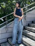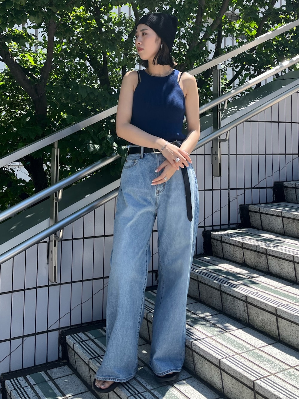 【タンクトップ】 ニット素材で伸縮性あります! パットが付いてないので、インナーは紐が見えてもいいようなパット付きのキャミを合わせるのがおすすめです!! 【デニム】 ウエストが緩めなので、腰履きしても、ベルトで締めてハイウエストで履いても🙆 とにかくゆったりずるっと履けるデニムです!! カジュアル好きな方は、ゆるっとしたTシャツあわせて、だぼっとコーデも可愛いです!! 綺麗め好きな方は、トップスはタイト合わせるのがおすすめです!!
