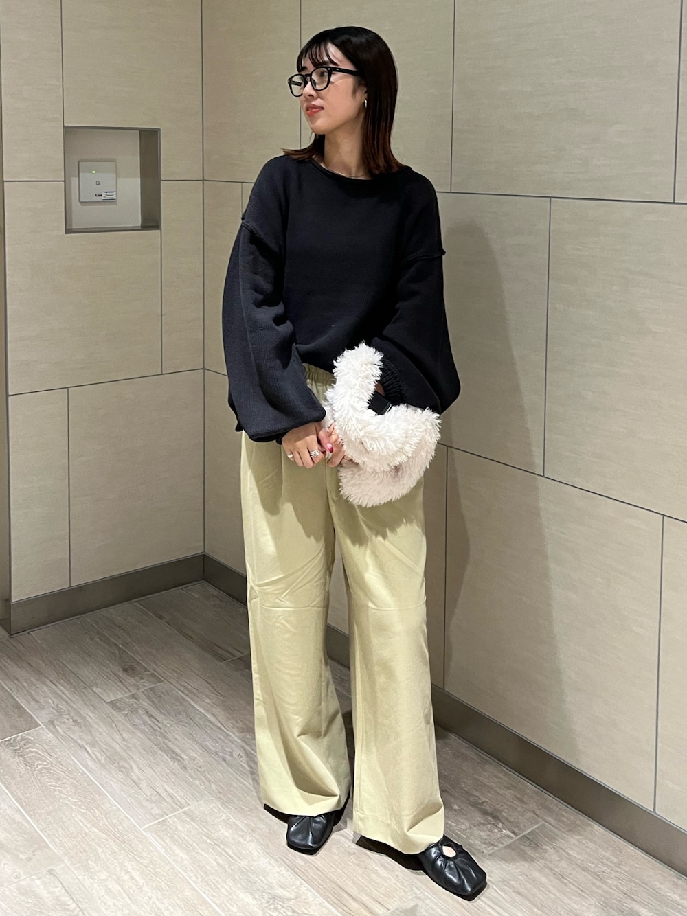 齊藤季梨(Ungrid)のニット/セーター「アウトリンキングクルーネックニット」を使ったコーディネート