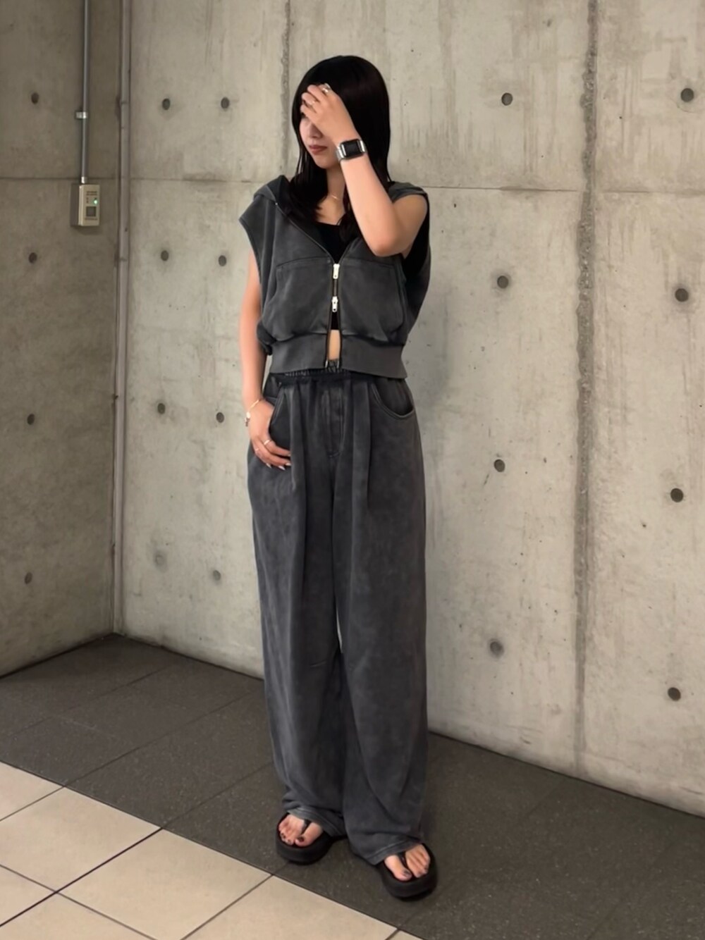 齊藤季梨(Ungrid)のパーカー「ヴィンテージウォッシュジップノースリパーカー」を使ったコーディネート