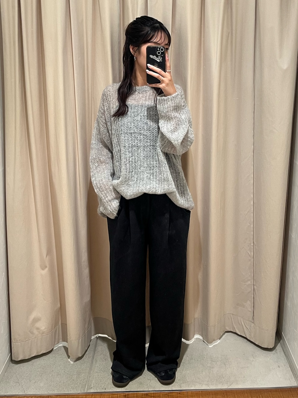 【ニット】 毎年大人気ニット🧶 今年のは首元が少し詰まっているので、ロンTなどのインナーが合わせやすくなりました!! 軽くて柔らかく、キャミソールで合わせてもチクチクしにくい素材になってます! 【ボトムス】 ゆったりラフに履けるスウェットパンツ! 前にタックが入っているので、シャツやジャケットと合わせて上品にも着ていただけます! 164㎝でスニーカーで合わせてちょうど良い丈感です!