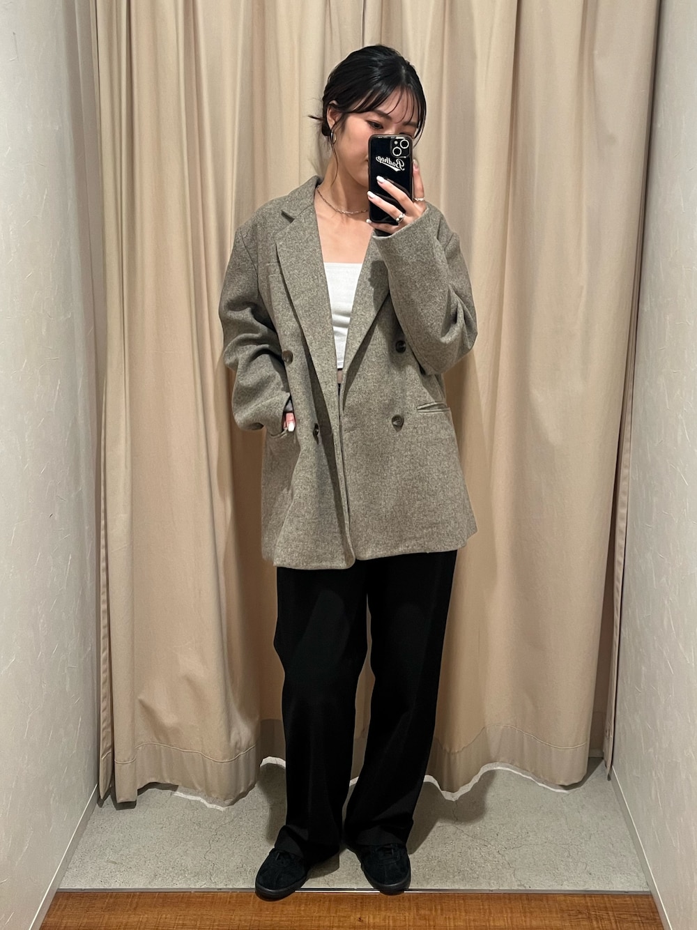 齊藤季梨(Ungrid)のテーラードジャケット「ワッペンデザインルーズ起毛ジャケット」を使ったコーディネート