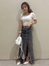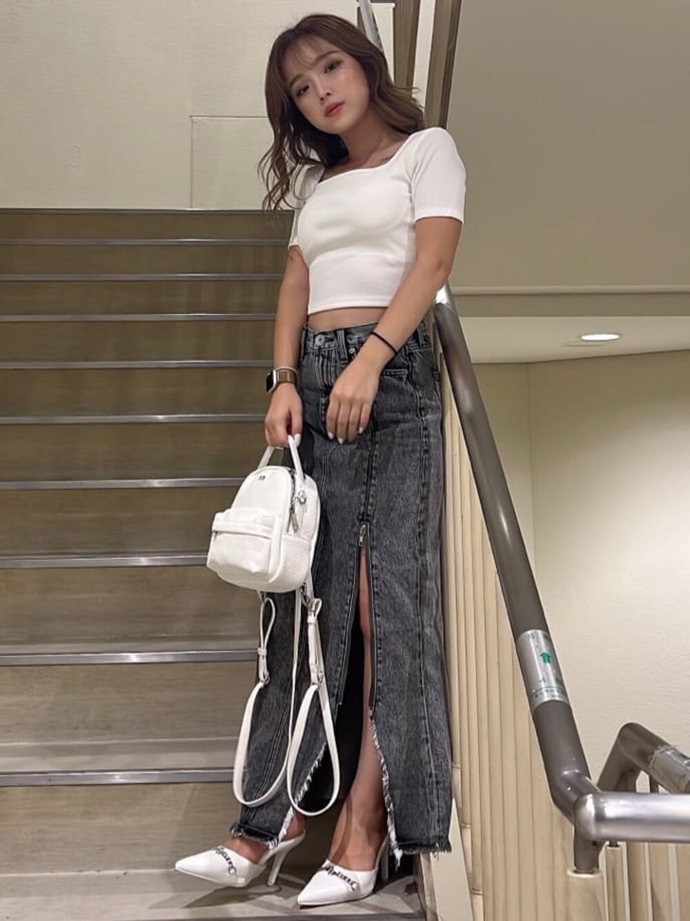 キレイめカジュアルコーデ♡ 【tops】バックデザインがレースアップになってるトップス✨ パットが付いているのでお下着困らず1枚で着用して頂けます ♡【bottom】ZIPスリット入りのデニムスカート♡ スリットの長さはZIPで調整して頂けます ✨ 裾はフリンジ加工になっているので可愛くなりすぎずGYDAらしくオシャレに着用して頂けます!!【bag】GGロゴ総柄の超優秀の4wayリュックです。 コーディネートによって斜め掛けなど沢山使い回して頂けます✨ 【shoes】GYDAで大人気のポインテッドミュートからロゴの入ったシリーズが登場しました♥さり気ないロゴなのでどんなコーディネートでも合わせていただけます !!
