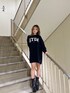 NEW ERAコラボitem ✨ 【tops】お尻が隠れるビッグシルエットのプルオーバーです。 分厚すぎない生地感なのでインナーにシャツなどをレイヤードしても可愛く着て頂けます♡ 150cmの私で膝上の丈感でした!【shoes】スタイルアップ抜群で毎年大人気のショートブーツ✨前との高低差があまり無いので楽に履いていただける+内側のチャックで着脱も楽にして頂けます ♡ とにかく足が盛れます♡