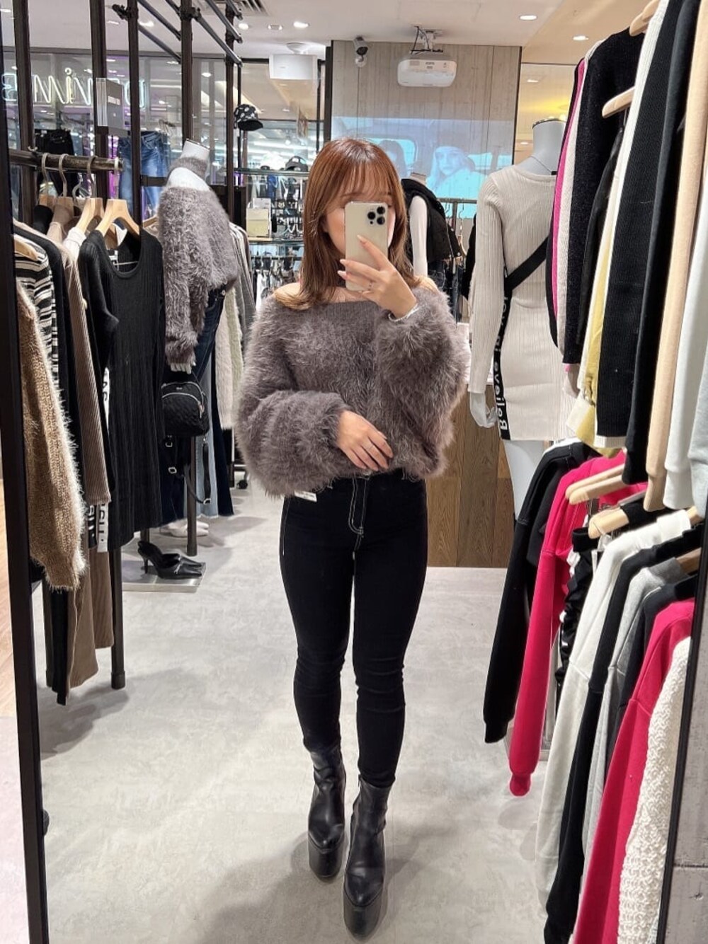 ふわふわモテコーデ♡⸝⸝ 【tops】毎年大人気の前後2wayで着用して頂けるふわふわの生地のシャギーニット✨ 着心地抜群でとっても暖かいのでオフショルなんですが冬でも心配なく着ていただけます♡ 丈感は少し短めなのでボトムにインして着用して頂きやすいです!【bottom】大大大人気のワンウォッシュスキニーから小柄な方向けのTinyシリーズで登場致しました✨スキニーなんですがストレッチ抜群でレギンスの用に履いていただけます♡ホワイトのステッチが入っているので履いていただいた時に足が細く見えます!!【shoes】スタイルアップ抜群で毎年大人気のショートブーツ✨前との高低差があまり無いので楽に履いていただける+内側のチャックで着脱も楽にして頂けます ♡ とにかく足が盛れます♡