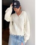春先取りコーデ 💛 【tops】ダメージ加工がGYDAらしくて可愛いニットです ✨ 胸元が広めのVネックで、ワンショルやオフショルとしても着用して頂きます ! ブラトップで1枚で着ても可愛いですし、中にキャミを着ても可愛いので1枚で沢山着回して頂けます ♡ 【bottom】GYDAらしいダメージ感の大人気ジャパンデニムです✨ しっかりした生地感で履けば履くほど自分の足に馴染む魔法のデニム ♡ 膝上にダメージがあるので、脚がより長く見えます ♡ 後ろのダメージも可愛い ♡ 【shoes】スタイルアップ抜群で毎年大人気のショートブーツ✨前との高低差があまり無いので楽に履いていただける+内側のチャックで着脱も楽にして頂けます ♡ とにかく足が盛れます♡