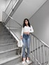 シンプルコーデ ♡ 【tops】毎年大人気アイテムのこちらのトップスが今年も登場致しました✨️ パッドが付いているので1枚で着用して頂けます ♡ デコルテ部分を凄く綺麗に見せてくれるので1枚で女性らしく着用して頂けます ♡ 【bottom】GYDA定番のワンウォッシュスキニーから新色が登場しました! 👏🏼 履きやすさはもちろん、ノーダメージで1つボタンのハイウエストデザインなのでどの系統の方でもベーシックに使っていただけます ♡ 履きやすさ美脚効果ピカイチのデニムです ♡ 【shoes】定番のポインテッドミュールは足が綺麗に見える拘りが沢山詰まっており、どんなコーディネートにも万能に使って頂けます♡
