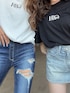 BUNNY 🐰 【tops】GYDAで大人気オリジナルキャラクターバニーちゃんのTシャツがNEWデザインで登場しました ✨ フロントデザインにはGYDAのブランドロゴ、 バッグデザインは大きくバニーちゃんがデザインされていてインパクト大でございます ♡ 小柄な方だと1枚でワンピース風にも着用できちゃいます !! 【bottom】シンプルなデザインのGYDAらしいデニムスカートです !! どんなコーデにも合わせられますし季節問わず使って頂ける万能アイテムでございます ✨ 中はショートパンツ付きなので安心して履いていただけるのもポイントです !