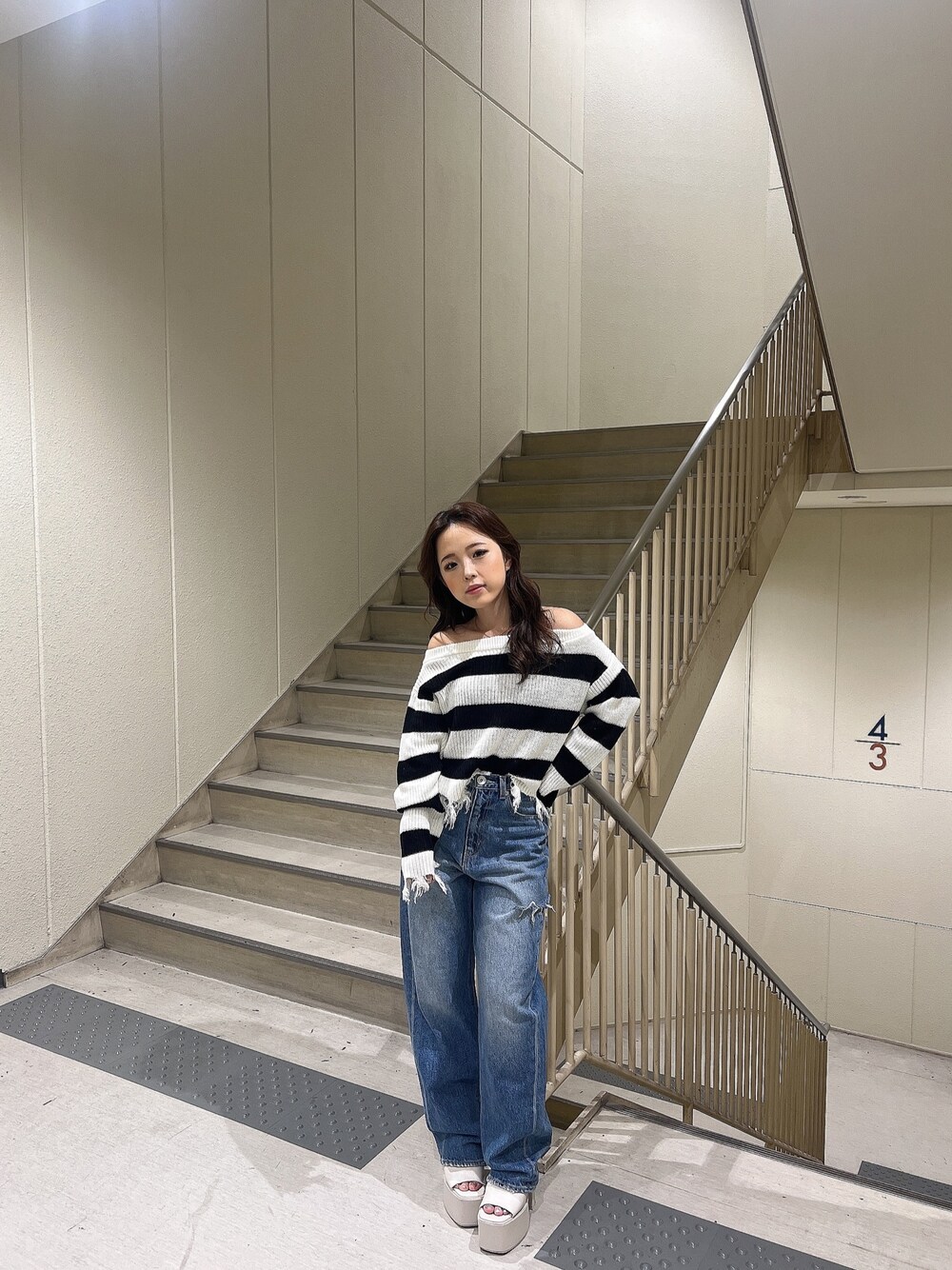 カジュアルコーデ 【tops】大人気のグラインダーニットのオフショルデザインが登場しました ✨ 肩ラインはゴムがしっかり入っており ズレずらいので安心して着ていただけます ♡ 【bottom】トレンドのサイドダメージデザインワイドパンツです。 綿100%生地で柔らかく履いて頂きやすいです ! 【shoes】BASICなチャンキーヒールのサンダルです ! 太ヒールで高低差が無い分安定感抜群で歩きやすく疲れにくいデザインなのでヒール慣れしていないけど、足盛りたい! って方はほんとにオススメでございます ♡