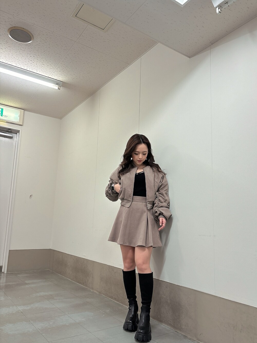 カジュアルなひ 🧸 新作で登場した ブルゾンとスカートのセットアップ !✊🏼 バラバラでも使いやすいし 着回し力も抜群 ♡ アームギャザーで カジュアルながらも 女性らしいシルエットで着れちゃいます♡ スカートの丈感も短すぎず長過ぎずで スタイル盛れ ✨️ カラー2色展開 / サイズフリー