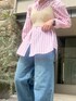 太めのストライプで存在感のあるストライプシャツ! ビスチェを合わせることでゆるさがあるシャツもスッキリみえるスタイリングに! カーブデニムはサイドからみる立体感が特徴でボリューム感がありながら、加工感やシルエットがこだわりのデニム! カットオフなので、低身長の方はカットしてバランスを取るのも可愛く履いていただけるデニム! ボリュームのあるデザインだからこそ、ウエストラインもとっても綺麗です!