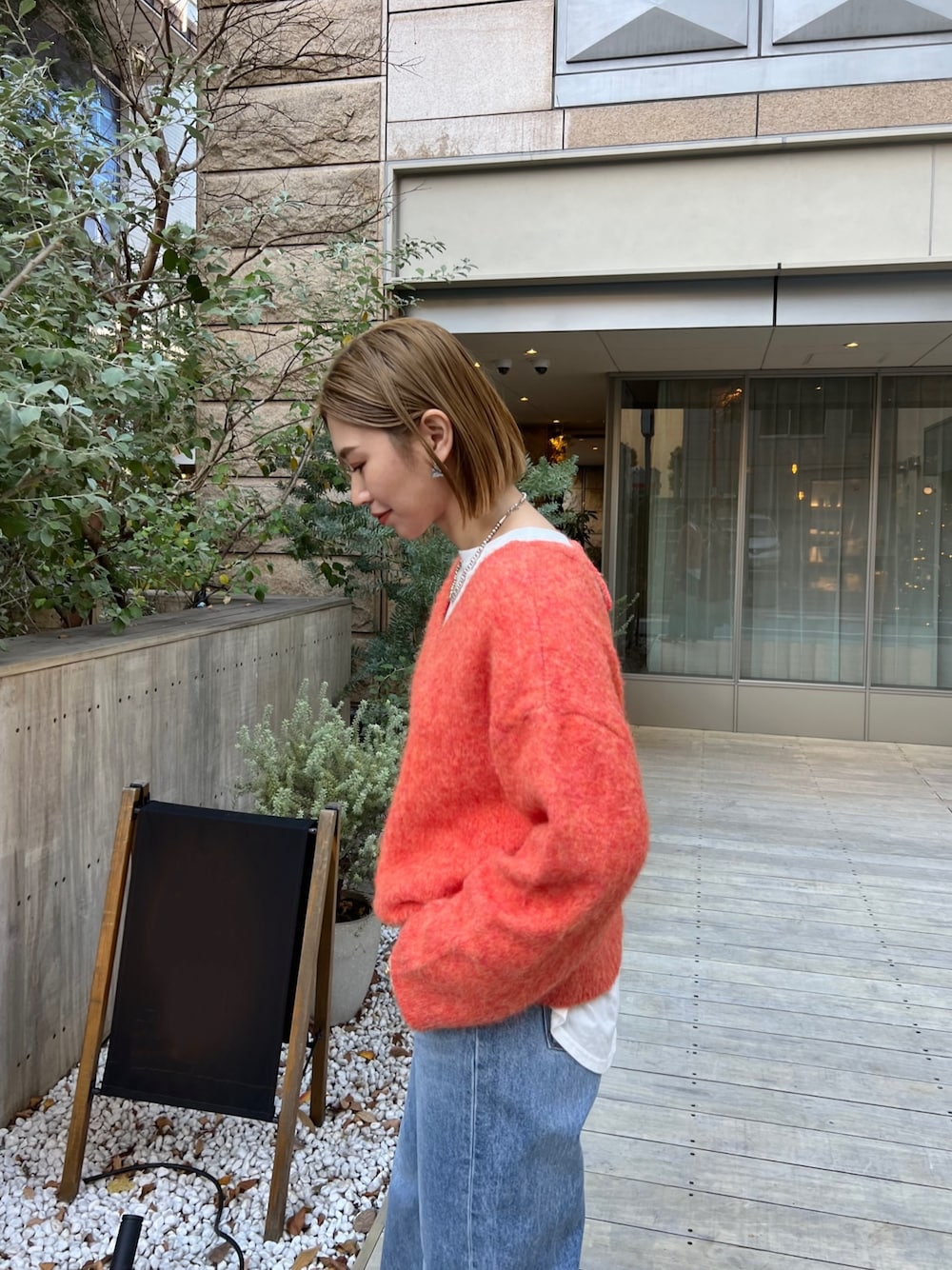 山本泰羽(Ungrid)のニット/セーター「起毛デザインVネックニット」を使ったコーディネート