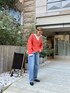 ニット:ゆるいVネックでバックのリボンで調節いただけます! ミックス糸で色味が可愛いです♡! カットソー:ラウンドのデザインで裾からみえるバランスが可愛いカットソーです! 生地が柔らかく肌感触が気持ちいいです♡ デニム:腰回りのフィット感が安心感があり 、テーパードで裾にかけて細くなるシルエットだけど、ルーズさがある綺麗なラインです♡