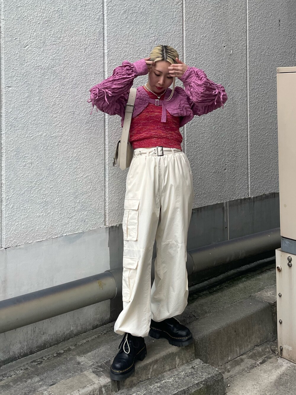 【マムルーク】 着るだけでおしゃれに見えちゃう魔法のアイテム❗️袖がギャザーが入っていて特徴的なデザインでおしゃれ度もアップ! 前後2wayにもなってるので気分に合わせて着こなすのも◎ 【タンクトップ】 2023年のトレンドのアメスリタンクトップ🤍 インナーはブラトップかヌーブラがおすすめですよ🥰肩がガッツリ出るデザインが華奢見えしておすすめ💕 【パンツ】 珍しいホワイトカーゴパンツ🤍 ルーズめの作りで、ウエストもゴムになっているので楽に着ていただけます🎶 ホワイトでも裏地はしっかりあるので下着が透けることもないのが安心👍