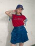 【トップス】 お袖がハイカットで腕が華奢見えしちゃうTシャツ💕 レッド×ブルーの配色も目立つこと間違いなし❣️ 【スカパン】 みんな安心スカートパンツです❣️ タイトすぎず台形がきれいなスカートで体型カバーもしてくれちゃいます!