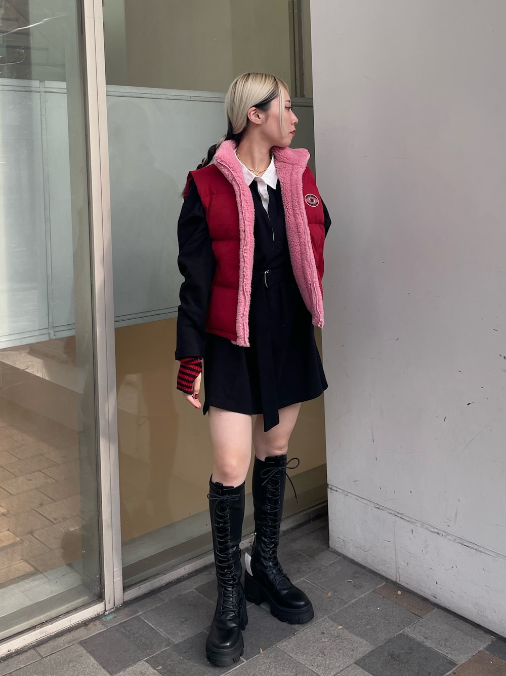 【ワンピース】 ラガーBIGワンピース! シャツ感覚のワンピースなのでラフに着れるけどおしゃれなワンピース🫶 【アウター】 ダウンベスト♡ 首周りにボアがついてるので冬でもあったかい♡オシャレなjouetieのワッペンも可愛い💕 【靴】 伸縮性のあるレースアップロングブーツ♡ とにかく生地が柔らかいので靴擦れも起こりにくい!