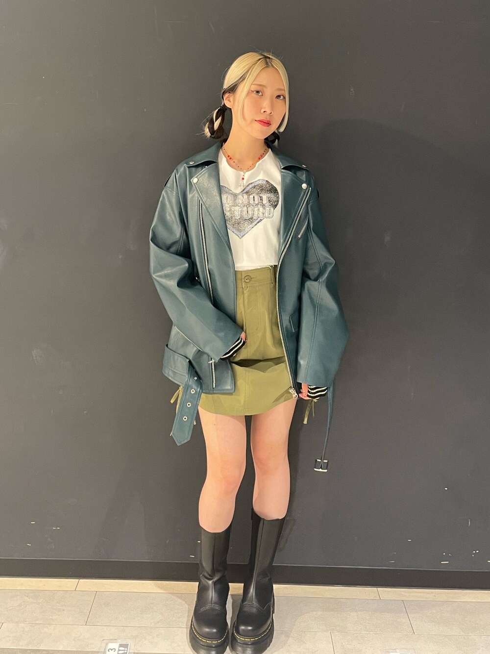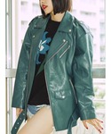 【ライダース】 おしりの下まですっぽり大きめライダースです♡ このくすみブルーはなかなかないですよ! 【スカート】 サイドのギャザーでひざ上からミニ丈まで調節可能です!